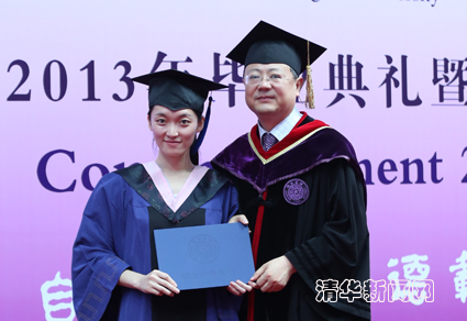 图为陈吉宁校长向毕业生授予学位。记者 智 斐