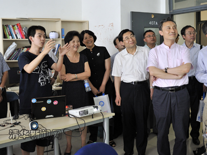 图为西北工业大学代表团一行听取清华学生对课外科研项目开展及科研团队建设的介绍。学生记者 王涵