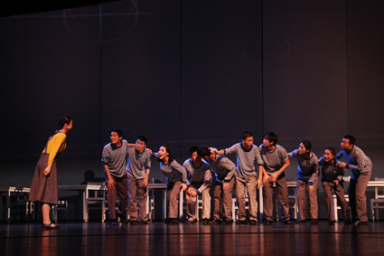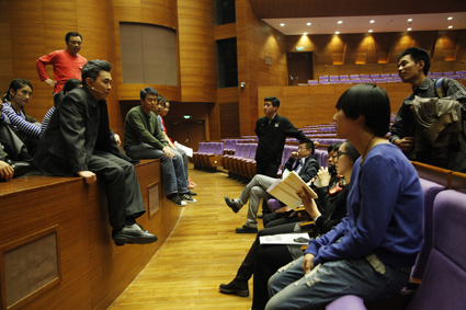 演出结束,剧组师生在总结当天演出经验 高晓蕾