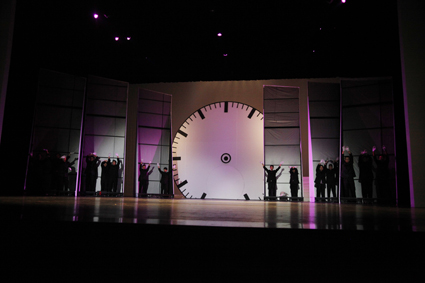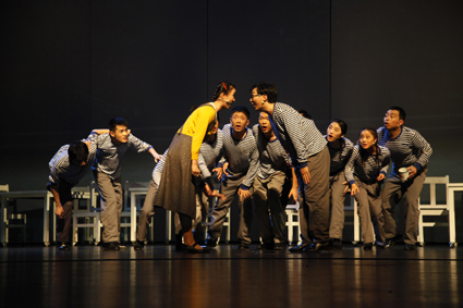 推动景片的演员们在演出结束后谢幕。 高晓蕾