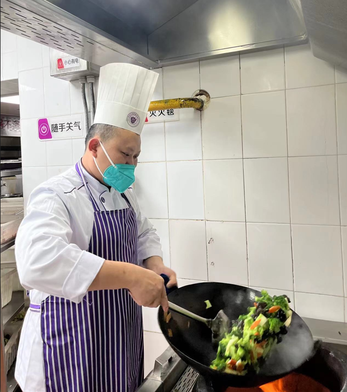 “视频讲解虽然方便,但是不能直观的看到厨师的操作,也不能尝味道,只能根据菜品的色泽来判断是否成功。像调芡汁这种细致活,差之毫厘,口味天差地别,只有尝过才知道。”考虑到当前的疫情形势,在解除观察后,他就主动住进了学校,只为让同学们在第一时间吃到地道美味的川湘菜肴。