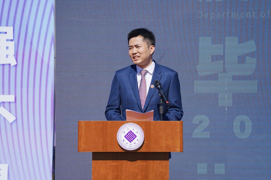 无八年级组长、电子系教授樊平毅发表致辞。他代表无八年级各班班主任、电子系研究生导师和各位任课老师,为毕业生们送上衷心祝福与美好期望。他希望毕业生们能百尺竿头更进一步,通过不断进取,实现自己的人生梦想,同时将个人的梦想融入“中华民族的伟大复兴”的中国梦,书写人生的精彩华章。